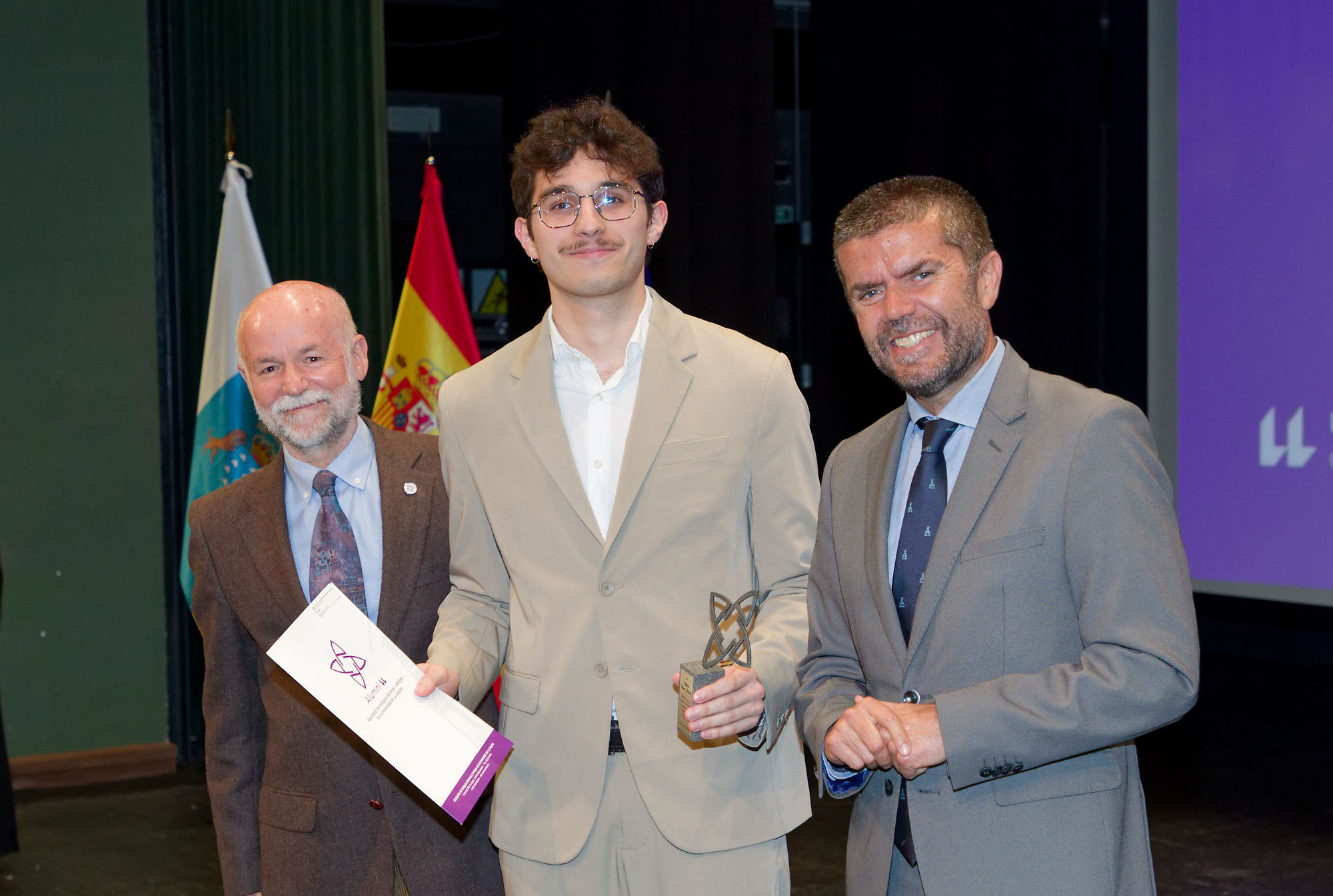 La primera parte de la gala estuvo dedicada a los premios de Alumni ULL, comenzando con el XIII Premio al Mejor Expediente Académico de la Universidad de La Laguna del curso 2023-2024, otorgado a Nelson Rivas Chacón. Este reconocimiento incluye una dotación de 1000 euros.